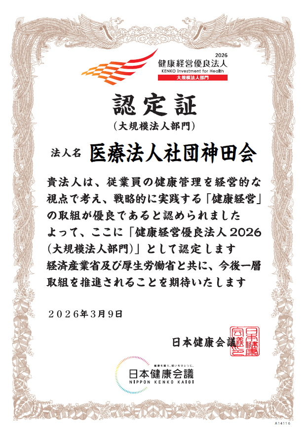 当法人は、地域の皆様の健康の推進の継続に加え、働く職員様たちの健康の推進・管理も継続してまいります。